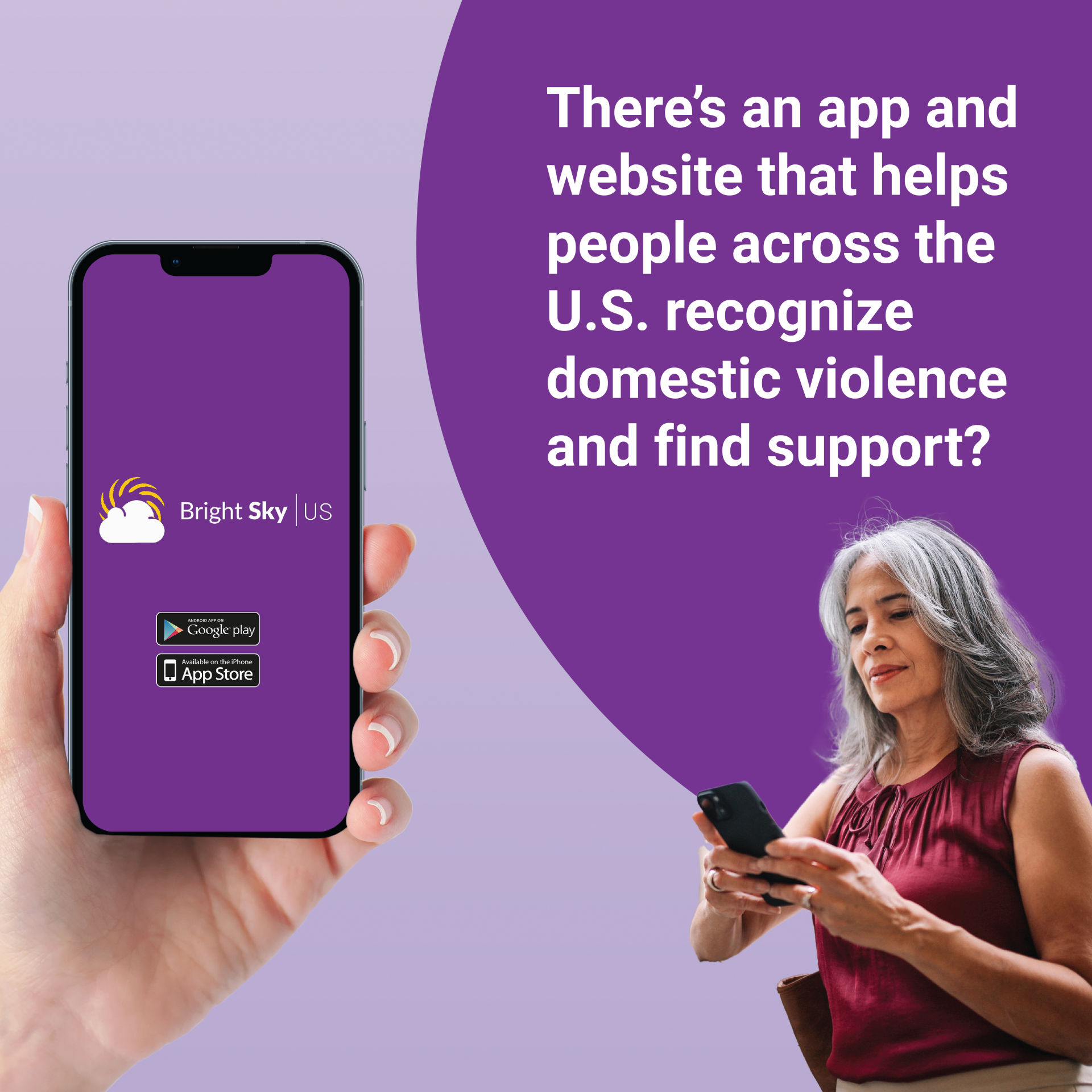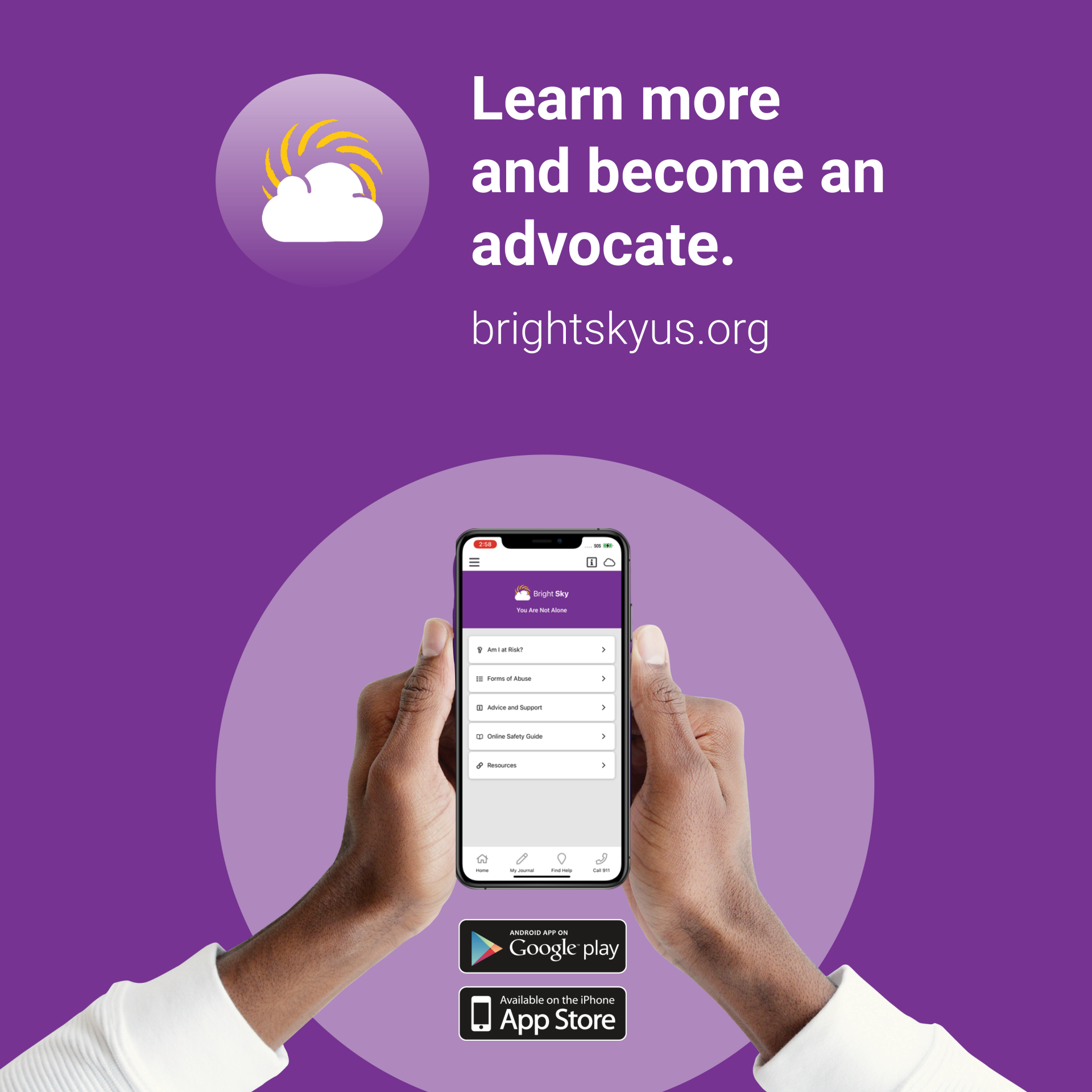 Everyone has a role to play in ending domestic violence. The Bright Sky app and website help anyone concerned about domestic violence access resources and find a safe path to support. We need your help to educate about domestic violence and reach those who need to know Bright Sky is available.