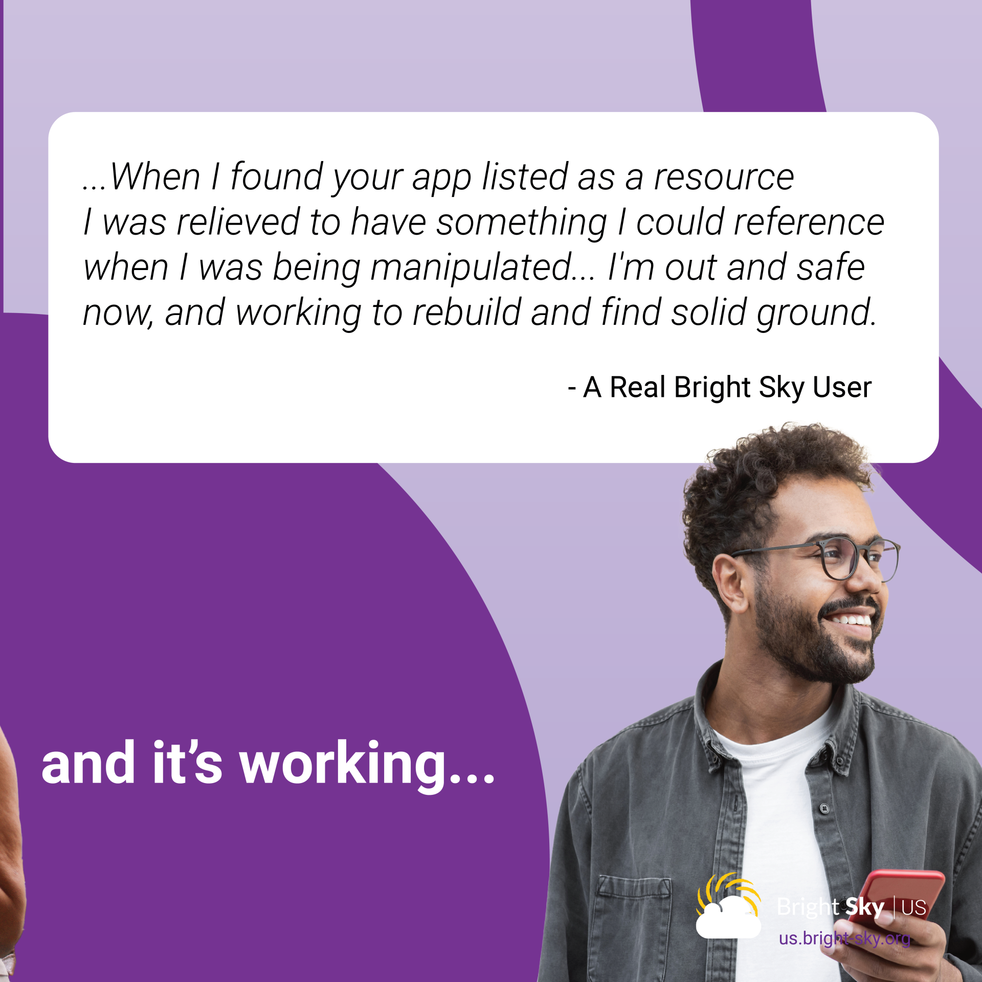 Bright Sky is a free app that provides support and information for anyone who may be in an abusive relationship or those concerned about someone they know.