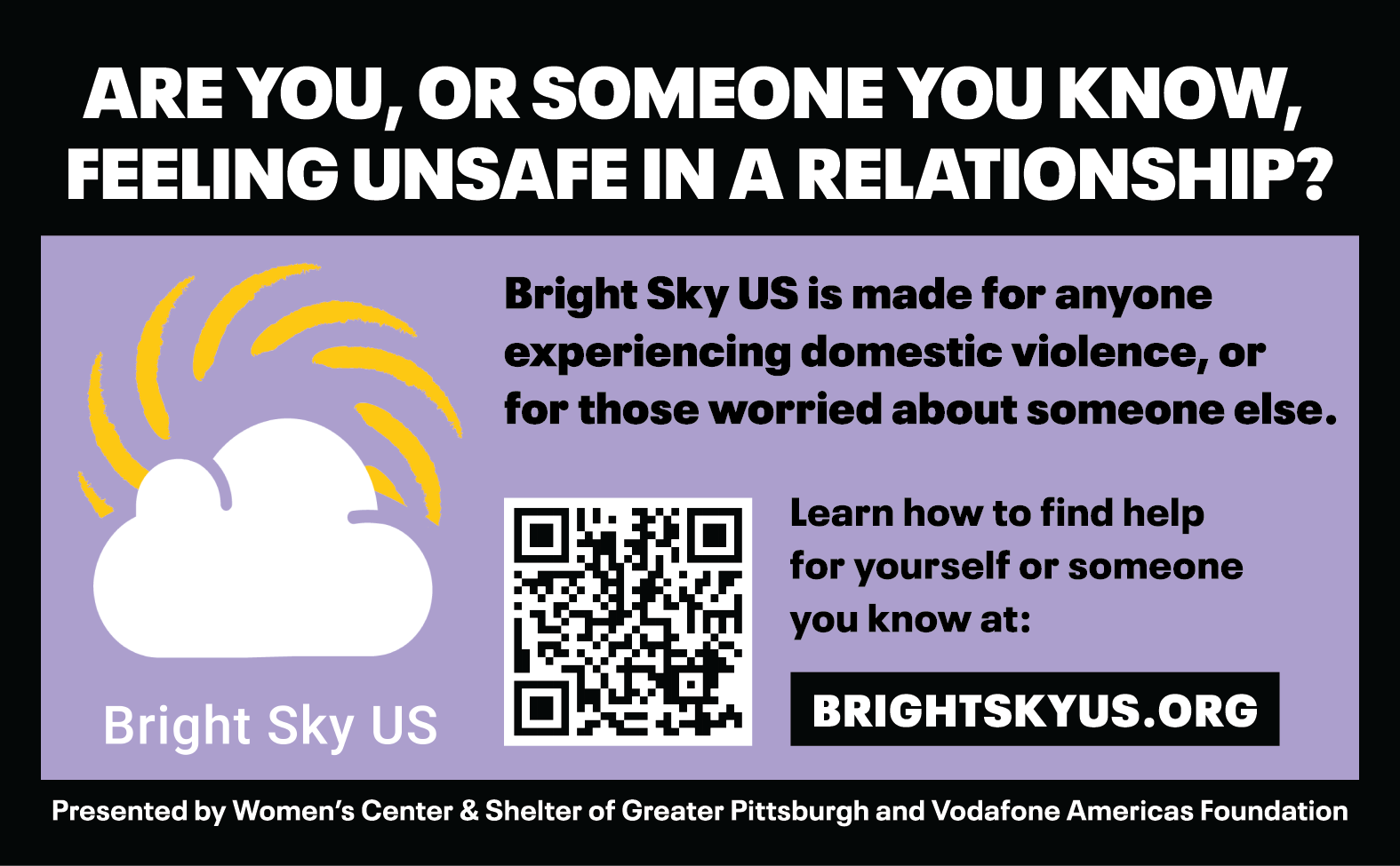 - Make sure to follow Women’s Center & Shelter of Greater Pittsburgh (@wcs_pittsburgh), DomesticShelters.org (@domesticshelters), and NO MORE (@nomoreorg) on Instagram, Facebook, Twitter, and LinkedIn for the latest news and updates!