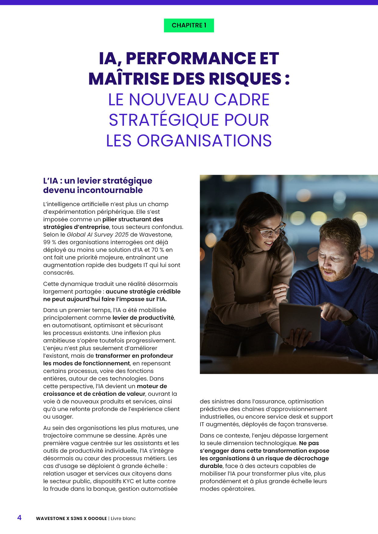 Co-écrit par Wavestone, S3NS et Google Cloud, ce livre blanc propose un éclairage concret sur la mise en œuvre d’une IA de confiance en s’appuyant sur l’offre PREMI3NS de S3NS, dans le respect des exigences SecNumCloud. Cette approche illustre une voie possible pour bénéficier de technologies d’IA de premier plan tout en répondant aux contraintes réglementaires et opérationnelles les plus exigeantes.
