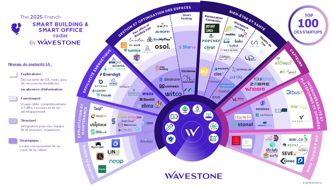 Radar Smart Building Smart Office 2025 : 100 start-ups sélectionnées pour leur expertise dans des domaines clés liés à l’évolution des environnements de travail et des bâtiments